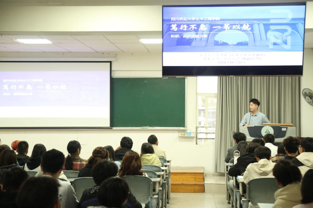 为进一步深化科创实践育人成效,增强大学生创新精神、创业意识和创新创业能力,充分调动学生创新创业积极性,2024年10月29日,yl7703永利官网于1510教室举办院内双创大赛培训会。学院创新创业指导教师胡进玲、直博浙江大学的川农学子曾靖楸、校团委青年科技创新服务中心负责人文淑冀及学院200余名学生参加培训会。