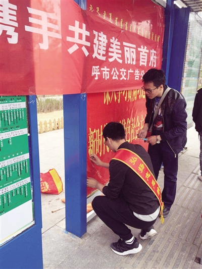 近日,呼市公交广告公司联合pg娱乐电子游戏官网入口机械学院金锁链青年志愿者协会开展了日行一善·德润青城“爱护公共设施,提升公交服务,携手共建美丽首府”党建主题实践活动。在新华大街客流量比较大的站点组织公交职工和志愿者开展集中服务活动,一方面维持乘车秩序,引导乘客文明乘车;另一方面清理站牌小广告,修复卷边、破损的公交线路图和公益广告。 ■本报记者 云艳芳 摄