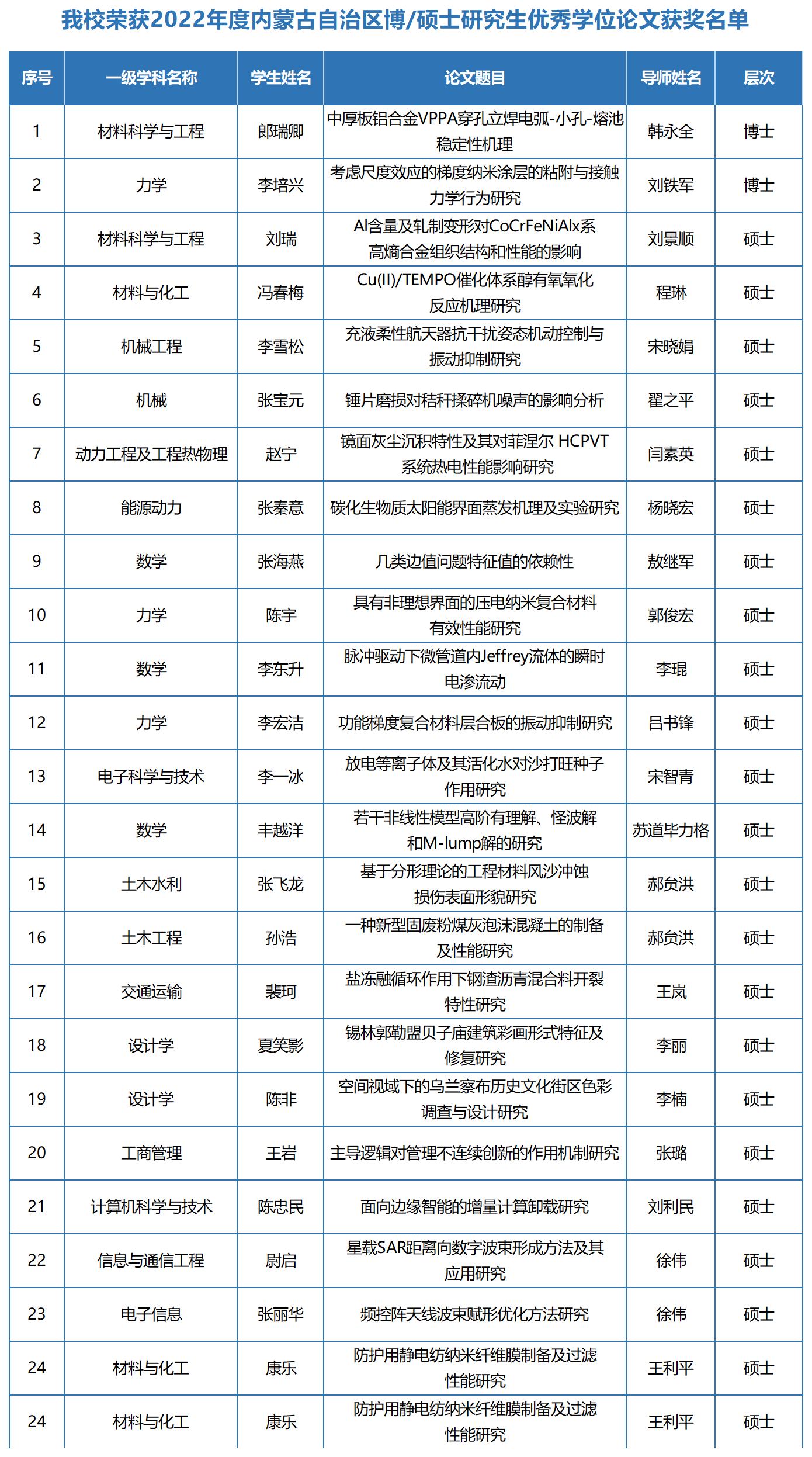 附:pg娱乐2022年度内蒙古自治区博/硕士研究生优秀学位论文获奖名单