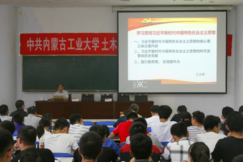 为深入学习贯彻习近平新时代中国特色社会主义思想和党的十九大精神,增强思想政治理论素养,5月10日下午,土木工程学院邀请自治区老教授报告团成员、我们学校关心下一代工作委员会常务副主任、硕士生导师王永顺教授,在第四教学楼第三报告厅作题为“学习贯彻习近平新时代中国特色社会主义思想”的专题讲座。学院教师和党校246位学员聆听讲座。学院党委书记那音巴雅尔主持。