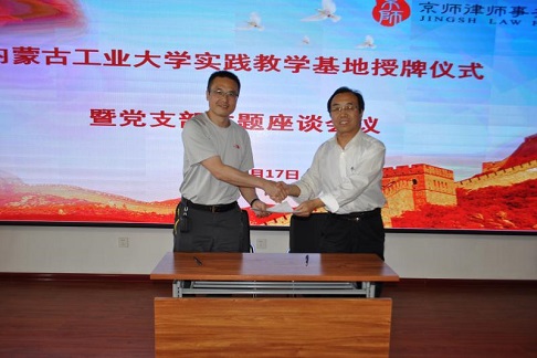 5月17日,人文学院与京师律师事务所在呼和浩特京师律师事务所举行实践教学合作交流暨联合党日活动。人文学院党总支书记马利强、院长文宗川、副院长苏丽娜,京师律师事务所满天星学院院长张振业、副院长杜广树、执行主任覃金金等出席活动。人文学院法学系教工党支部全体党员教师及京师律师事务所党支部全体党员律师参加本次活动。法学系教工党支部书记王寅与京师律师事务所主任徐杰联合主持活动。