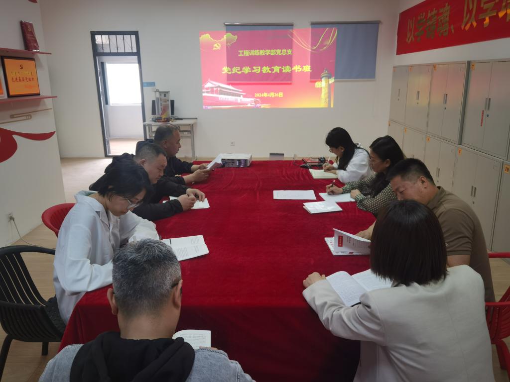 4月25日26日,工程训练教学部党总支举办党纪学习教育专题读书班暨党总支理论学习中心组(扩大)学习会。教学部党总支委员、各党支部书记、科级干部参加学习。
