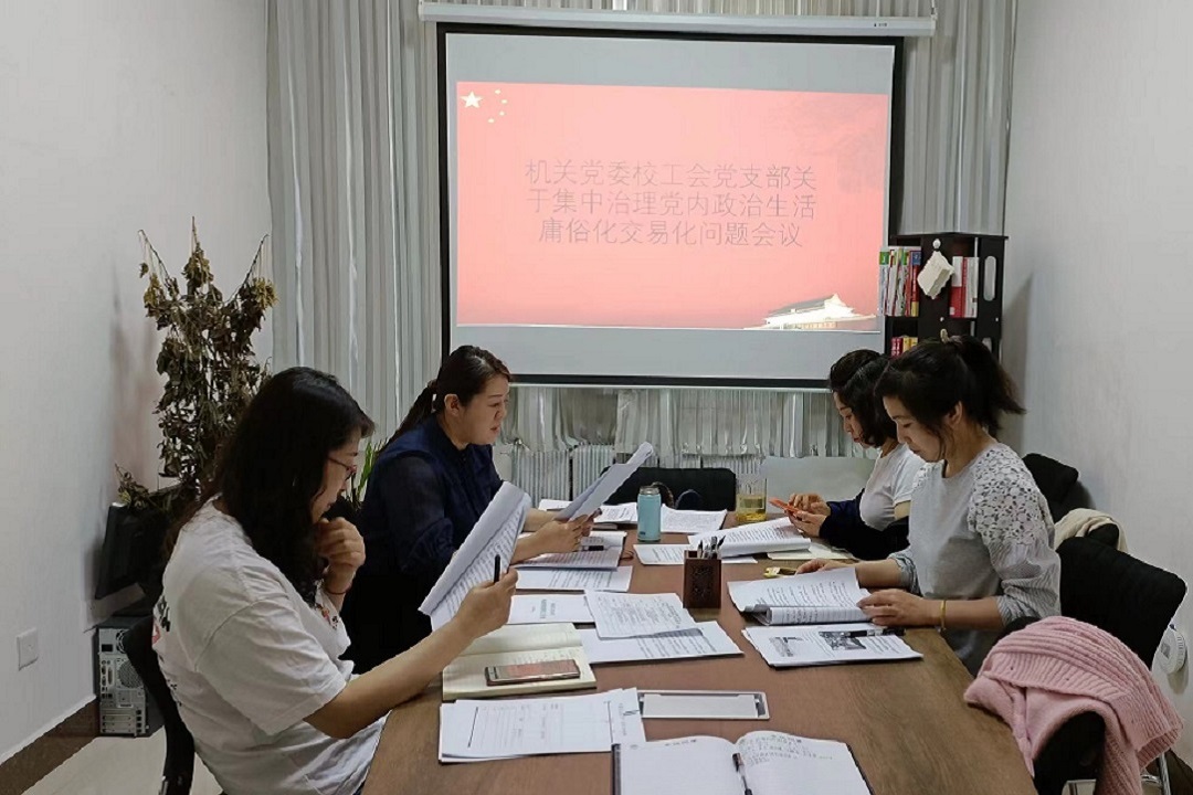 4月26日,机关党委校工会党支部召开集中治理党内政治生活庸俗化交易化问题工作部署会,全体党员参加会议。