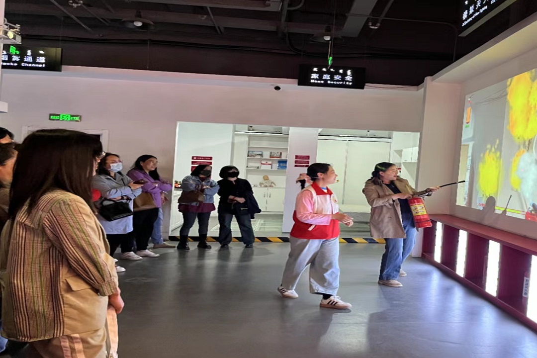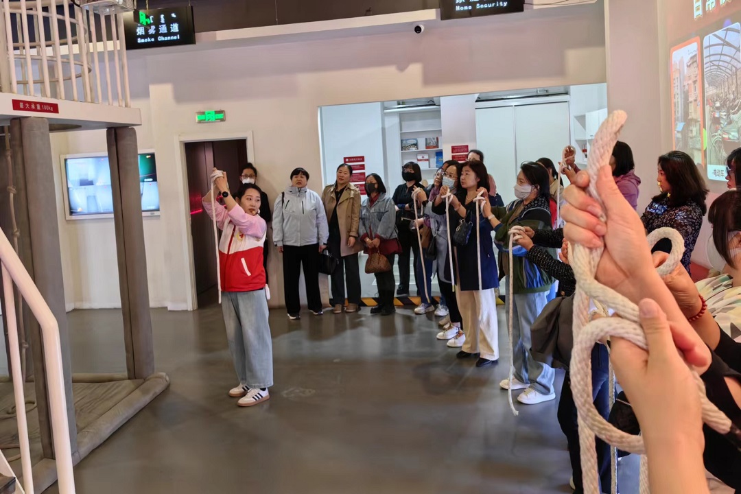 参与活动的教职工在工作人员的带领下,利用虚拟仿真、声像传感等技术,体验了地震、火灾等突发灾害来临时的场景细致学习应对方法,掌握家庭生活、交通驾驶等场景的安全隐患排查方法。在讲解员指导下,大家现场练习心肺复苏、海姆立克急救和制作逃生绳进一步增强守护健康与安全的能力。