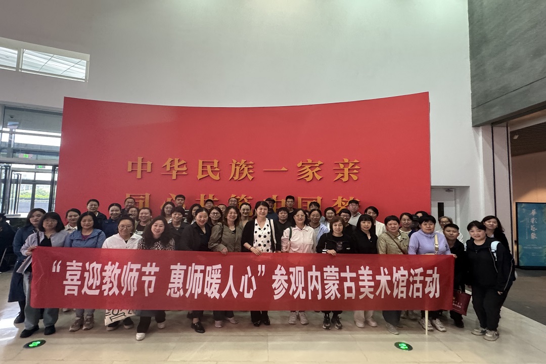 9月6日,40个教师节到来之际,为大力弘扬教育家精神向广大教职工传递关心关爱,工会特开展“ 喜迎教师节 惠师暖人心”活动,组织广大教职工赴内蒙古美术馆参观,各分会50名教职工代表参加。