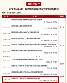 近日,第九届高等学校外语教育改革与发展论坛在北京举行,pg娱乐外国语学院院长董君受邀出席并在“大学外语论坛:服务国家战略的大学英语课程建设”中作“边疆地区理工类高校大学英语课程建设路径探索”专题发言。