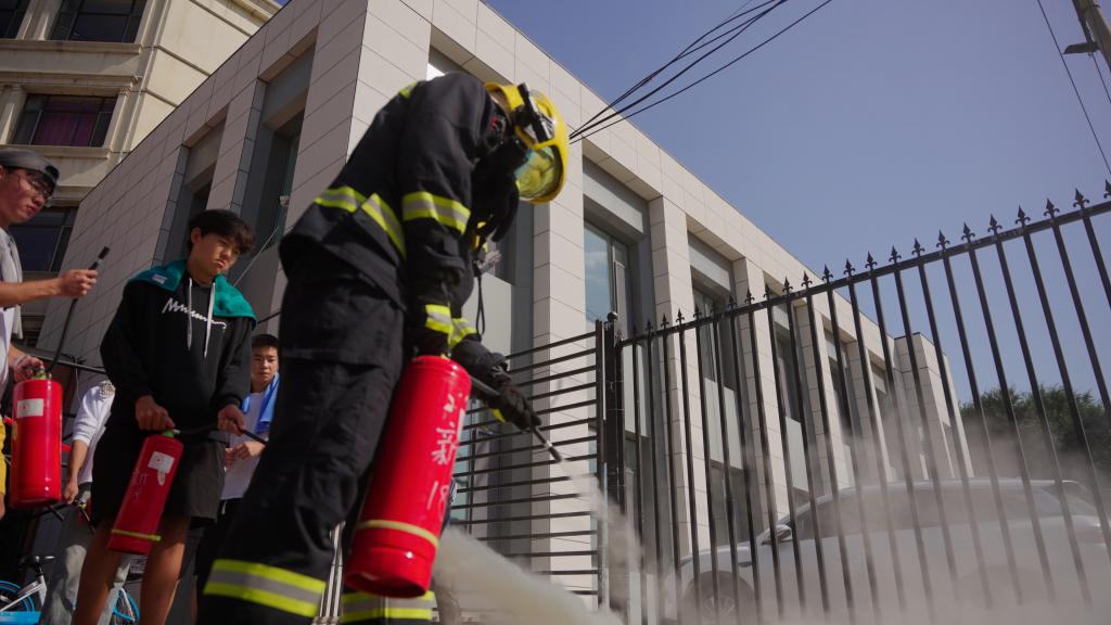 本次活动涵盖疏散演练、消防装备器械展示与讲解、消防救援装备实操三大环节疏散演练中,来华留学生在教师与工作人员引导下沿预定路线迅速有序向安全区域撤离。消防装备展示环节,消防救援专业人员重点介绍包括音视频生命探测仪,复合气体检测仪和液压破拆工具组等多种先进装备。在专业人员指导下,来华留学生轮流体验灭火器扑救初起火灾的过程,并尝试佩戴逃生设备进行模拟逃生。