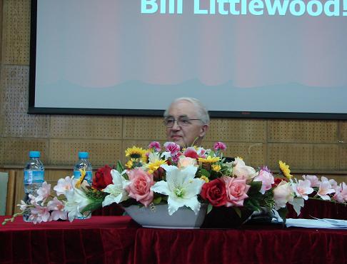 比尔·利特尔伍德(Littlewood.W.T)教授作了题为《国际EFL/ESL教学现状》的报告。他以提高学生交际技能策略为宗旨,重点诠释了“四维一体”的模式。
