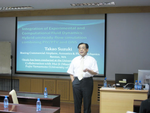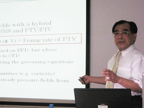 山本教授专门为与会者准备了报告中专有名词的中英对照翻译,以丰富的实例、细致的分析、生动形象的讲述向广大师生介绍了采用PTV与DNS相结合研究流体力学问题的方法,向与会师生展示了一个形象的微观的流体世界。会上,广大师生就感兴趣的问题与山本教授进行了探讨,气氛热烈。