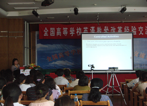 7月12日下午,北京交通大学外国语学院的邵钦瑜教授作了题目为《注重网络自主学习和课堂教学相结合,强化学生英语听说能力的培训》的讲座。邵钦瑜教授以北京交通大学的“大学英语”课程体系设置为例,向与会来宾介绍了北京交通大学大学英语教学改革的经验,并提出了继续深化大学英语教学改革的思路。