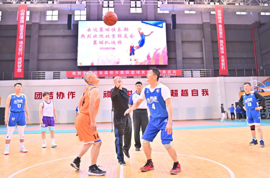 刘利强为比赛开球并代表学校对北京部分校友返回母校表示热烈欢迎。他指出,北京校友分会与母校教职工代表队篮球友谊赛是一项校友与母校交流、增进友谊的传统比赛项目,也是校友回校重温美好青春记忆,增进师生友谊的重要载体。希望校友们返校期间开心愉快,并欢迎校友们常“回家”看看。