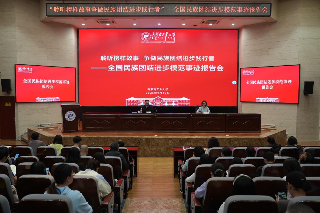 9月19日下午,在民族团结进步活动月深入开展之际,pg娱乐举办“聆听榜样故事 争做民族团结进步践行者”全国民族团结进步模范事迹报告会,邀请2024年全国民族团结进步模范个人、内蒙古自治区民族事务委员会地方语言文字研究应用中心主任阿拉坦巴根那研究员作报告。校党委副书记赵增武出席,学校统一战线工作领导小组成员单位负责人,各院处级党委、党总支书记,各宣讲团成员,机关党委教师代表,新教师代表,各学院辅导员、学生代表等350余人参加。校党委委员、统战部部长任慧主持报告会。