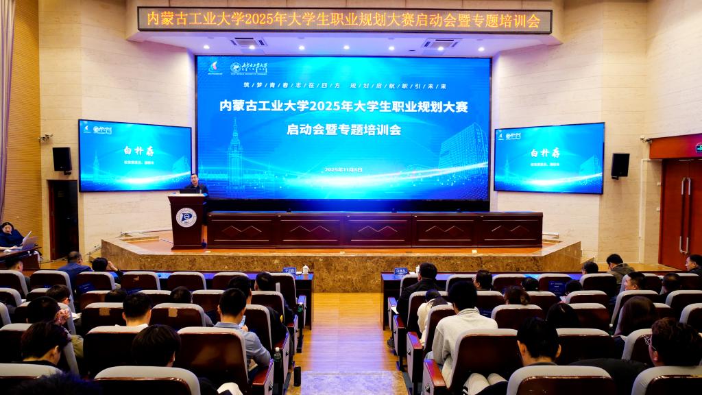 11月8日下午,pg娱乐在新城校区明德楼第一报告厅召开2025年大学生职业规划大赛启动会暨专题培训会。校党委委员、副校长白朴存出席会议并讲话,各学院分管学生工作副院长、校院两级就业工作人员及教师学生代表参加会议由招生就业处处长于立群主持。