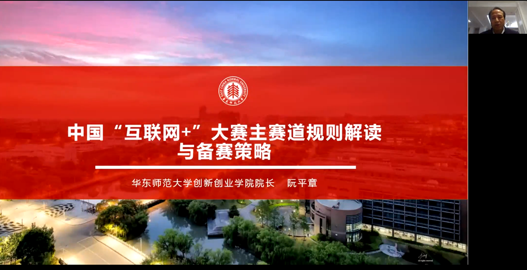 华东师范大学创新创业学院院长阮平章、工信资本合伙人中国国际互联网+大学生创新创业大赛国赛评委张冰红、北京投智网络科技有限公司 CTO刘永昌等3位专家,分别以“互联网+”大赛主赛道比赛规则解读与备赛策略、红旅赛道优质项目的来源及培育、“互联网+”产业命题赛道备赛要点及优秀项目特征为题开展专题培训,分享往届大赛优秀项目成长历程,就如何打好比赛提出自己的意见和建议。