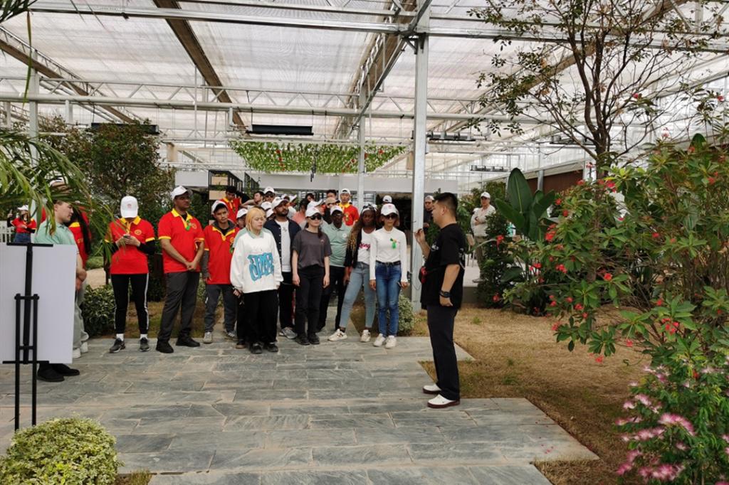 植树活动结束后,中外学生们一起参观了恩格贝沙漠博物馆和绿色农畜产品基地。恩格贝沙漠博物馆的讲解员从“一粒沙”讲起,为留学生介绍沙漠的种类、分布,带领大家了解在荒漠地区合理开发利用天然资源进行干旱地区荒漠化治理的科学知识和恩格贝生态治理的成功案例。