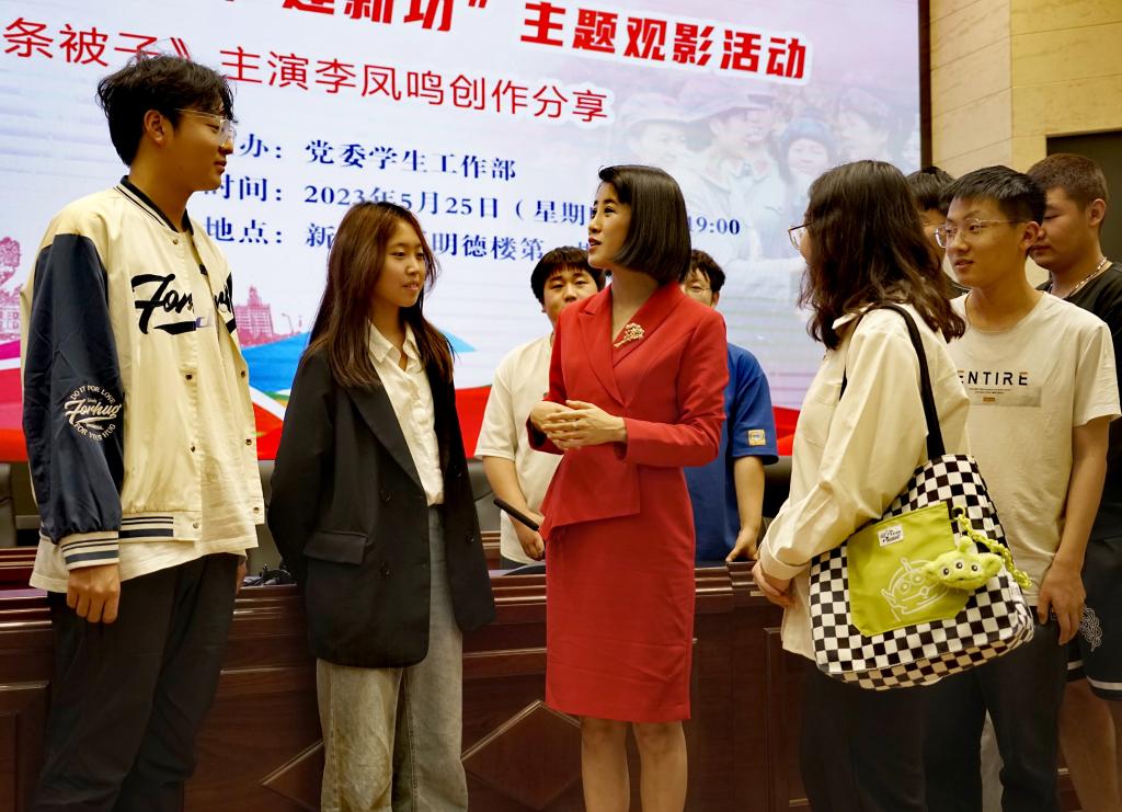 观影结束后,李凤鸣与师生互动。她表示将始终坚持宣传红色文化,弘扬革命精神,把中国共产党史那些感人至深的故事搬上荧幕,用影片形式传播红色故事、传承红色精神