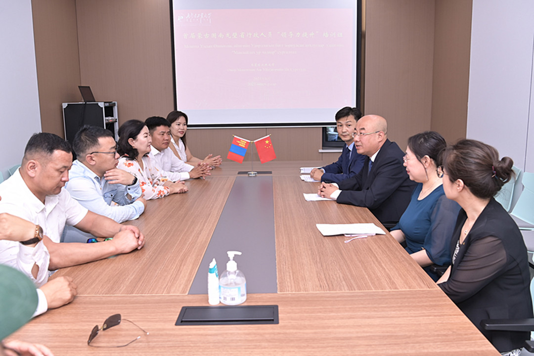 6月25日,首届蒙古国南戈壁省行政人员“领导力提升”培训班开班仪式在pg娱乐新城校区举行。副校长王利明,国际教育学院全体教职工来自蒙古国南戈壁省的20名行政人员参加。