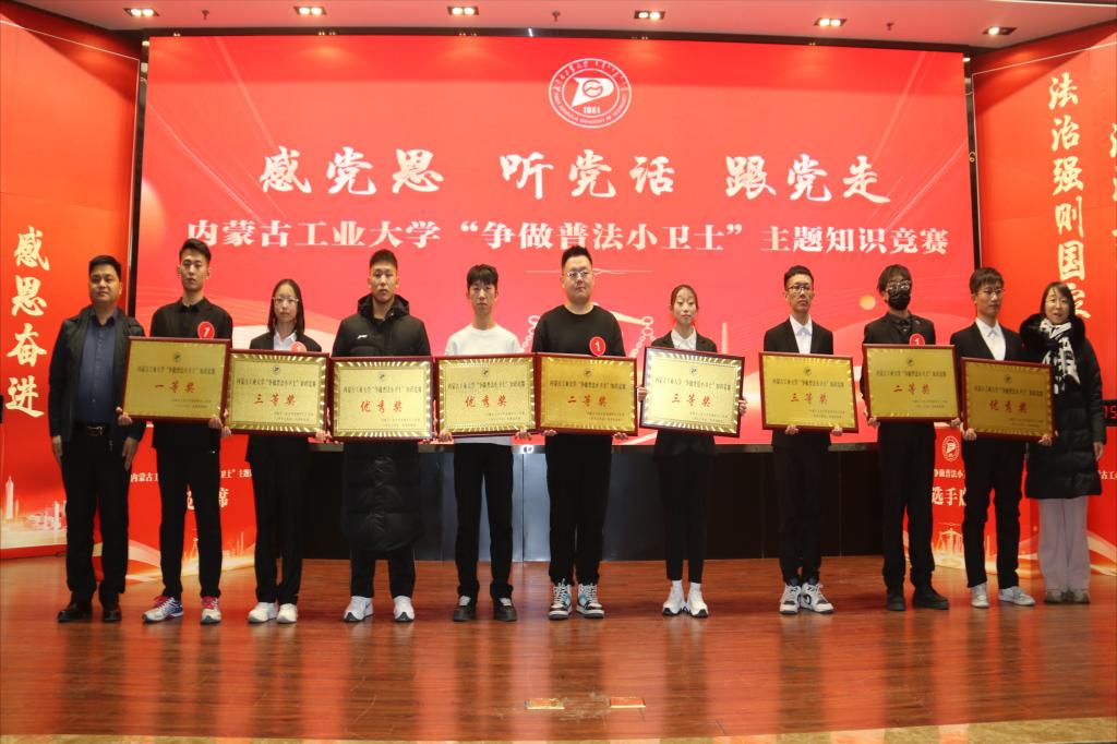 来自各学院的28支代表队经过初赛、复赛两轮角逐,最终4个学院6支代表队进入决赛。决赛分初露锋芒、当机立断、金石为开三个环节。经过激烈比拼,电力学院“实践出真知队”获一等奖,人文学院“北疆先锋队”、航空学院“遵纪守法队”获二等奖,化工学院“普法小队”、“阳光开朗队”、电力学院“绿色能源队”获三等奖,经济管理学院“筑梦亚军队”、电力学院“乘风破浪队”获优秀奖。