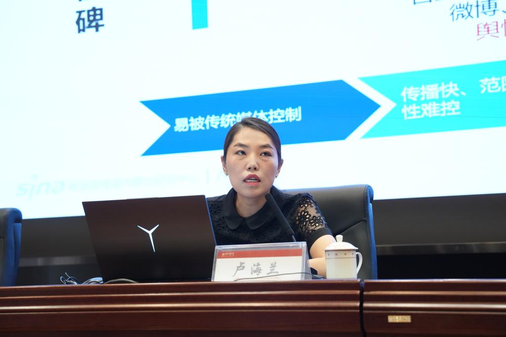 卢海兰从舆情生态环境、网络意识形态、舆情风险研判及应对等方面,通过丰富详实的案例讲解了新形势下舆论生态环境的特点以及舆情应对处置的思路和方法。