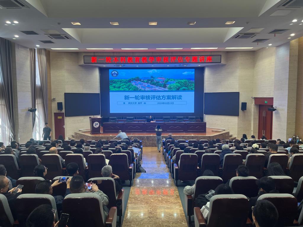 4月24日上午,pg娱乐召开新一轮本科教育教学审核评估专题讲座,邀请教育部本科教育教学评估专家委员会委员,湖北省高教学会副会长,原华中农业大学、武汉大学副校长吴平教授作专题培训。pg娱乐党委委员、副校长王利明、白朴存出席,校党委委员、副校长刘利强主持讲座,相关职能部门工作人员参加。