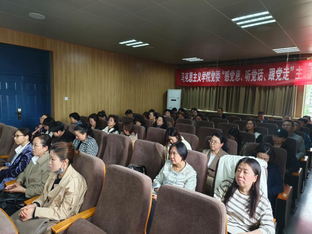为进一步提高思政课吸引力,让思政课更接地气,4月28日下午,马克思主义学院开展本学期第二期教学工作坊暨“构建思维型课堂 让思政课更接地气”专题讲座。讲座邀请内蒙古师范大学马克思主义学院副教授、学科思政硕士研究生导师齐玉梅到校开展专题培训。学院相关领导,全体思政课教师参加。