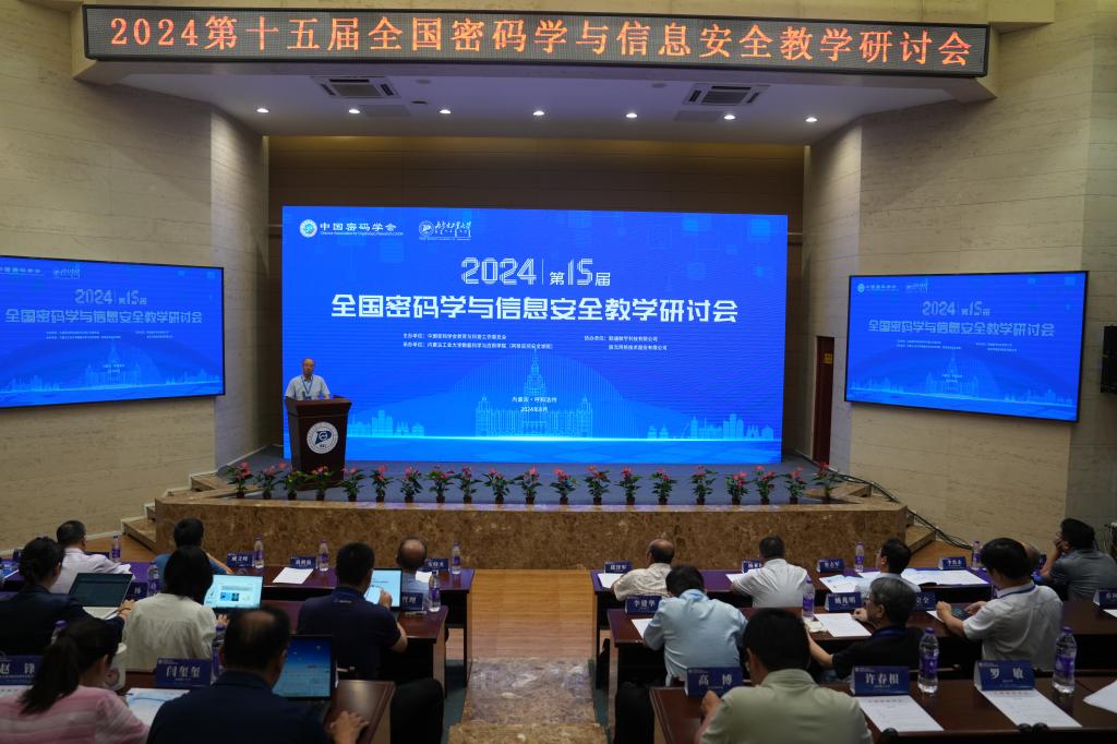 8月16日,由中国密码学会教育与科普工作委员会主办,pg娱乐承办的2024第十五届全国密码学与信息安全教学研讨会在新城校区明德楼成功举办。校党委委员、副校长刘利强,中国密码学会党委书记、副理事长兼秘书长安晓龙,内蒙古自治区密码管理局局长杨亚珂,中国密码学会常务理事、教育与科普工作委员会主任委员李子臣出席开幕式并致辞。国家密码管理局商密办一级巡视员邱泽军,中国密码学会副理事长、信息工程大学教授戚文峰,内蒙古自治区密码管理局副局长张志军和100余位来自全国各高校的专家学者、企业代表参加会议
