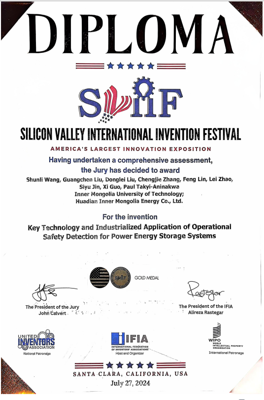 近日,2024年美国硅谷国际发明创新节(SVIIF)在加利福尼亚圣克拉拉举办,经多轮专业评审选拔,pg娱乐与华电内蒙古能源有限公司合作申报的“新型电力系统大规模储能安全监测核心技术与应用”项目荣获国际金奖。