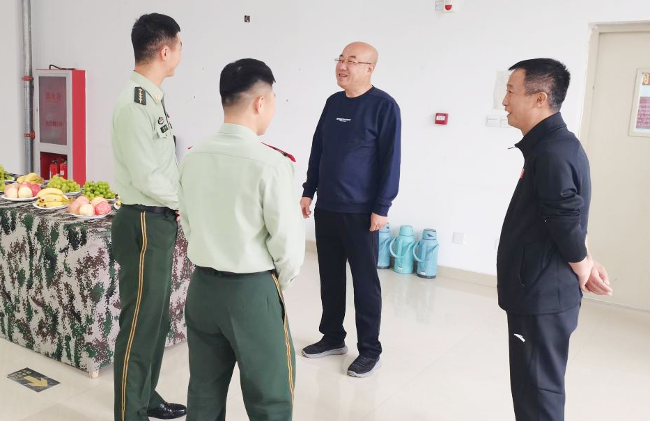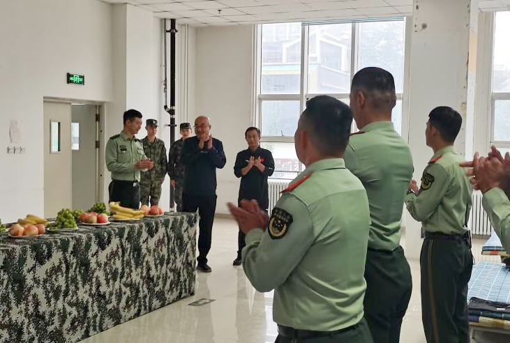 歌会开始前,王利明慰问军训教官,向辛勤付出的武警官兵们送上节日祝福。