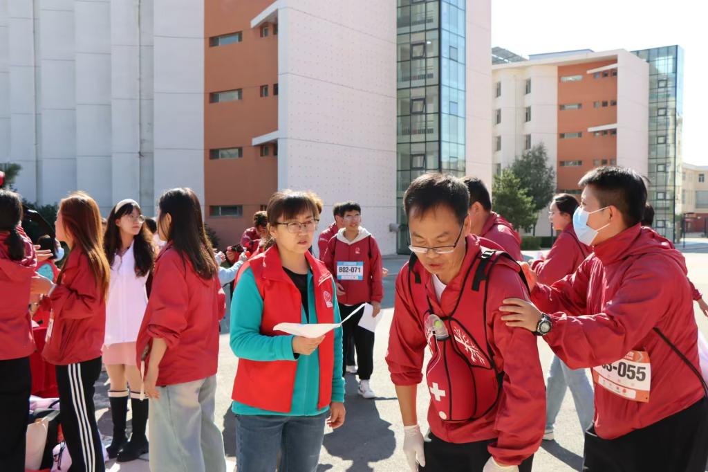 本次赛事紧扣25个“世界急救日”主题“急救与运动”既是一次应急救护的实战演练,更是提高广大师生应急避险和自救互救意识的再号召、再动员。赛事共设20条线路,每条线路长度约为5公里5人一组计时出发,根据任务地图指示顺序完成10个任务点打卡,途中完成心肺复苏+AED操作、小腿骨折固定+担架搬运、应急救护知识问答气道异物梗阻排除、创伤包扎(5项)等任务后返回终点。比赛期间各组成员配合默契精诚合作,在比赛中进一步掌握急救知识,培养协作能力