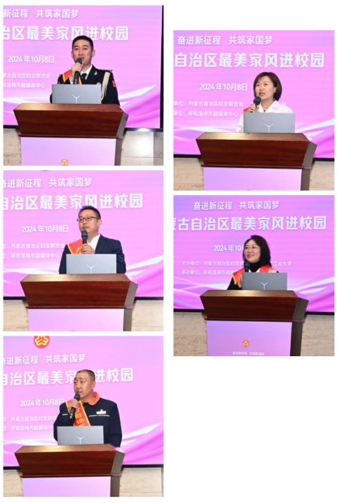 马克思主义学院教师李美霞、能源与动力工程学院新能源学科与工程专业2022级本科生王艺璇分别发言,表示向身边的榜样学习,注重家庭家教家风建设,争做最美家风的传承者、弘扬者、践行者,把实现个人梦、家庭梦融入国家梦、民族梦之中,为完成好习近平总书记交给内蒙古的“五大任务”和全方位建设模范自治区两件大事、书写中国式现代化内蒙古新篇章贡献青春的智慧和力量。