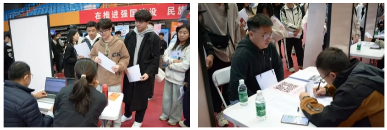 招聘会场人头攒动,毕业生与用人单位零距离沟通,了解岗位需求、职业发展路径、薪资待遇,并积极投递简历。经统计,现场近万名毕业生投递简历数15619份,924人达成初步就业意向。