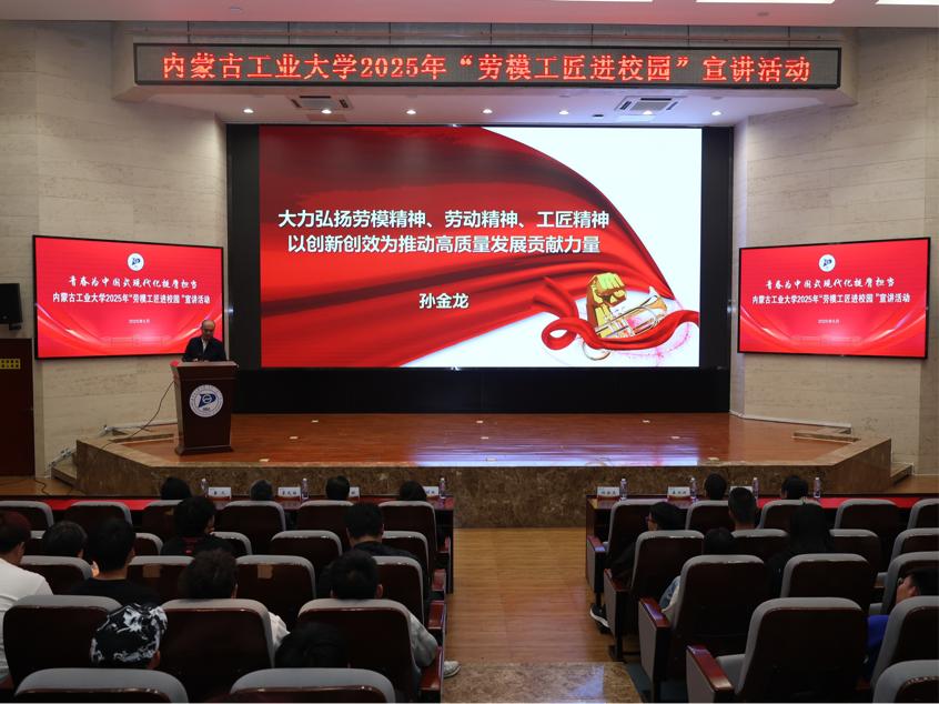 5月15日,pg娱乐组织开展劳模工匠进校园活动,全国劳动模范、全国五一劳动奖章获得者、pg娱乐优秀校友孙金龙,内蒙古自治区“草原英才”“青年科技领军人才”、pg娱乐能源与动力工程学院常泽辉教授作青春为中国式现代化挺膺担当”主题宣讲报告全校300余名师生参加