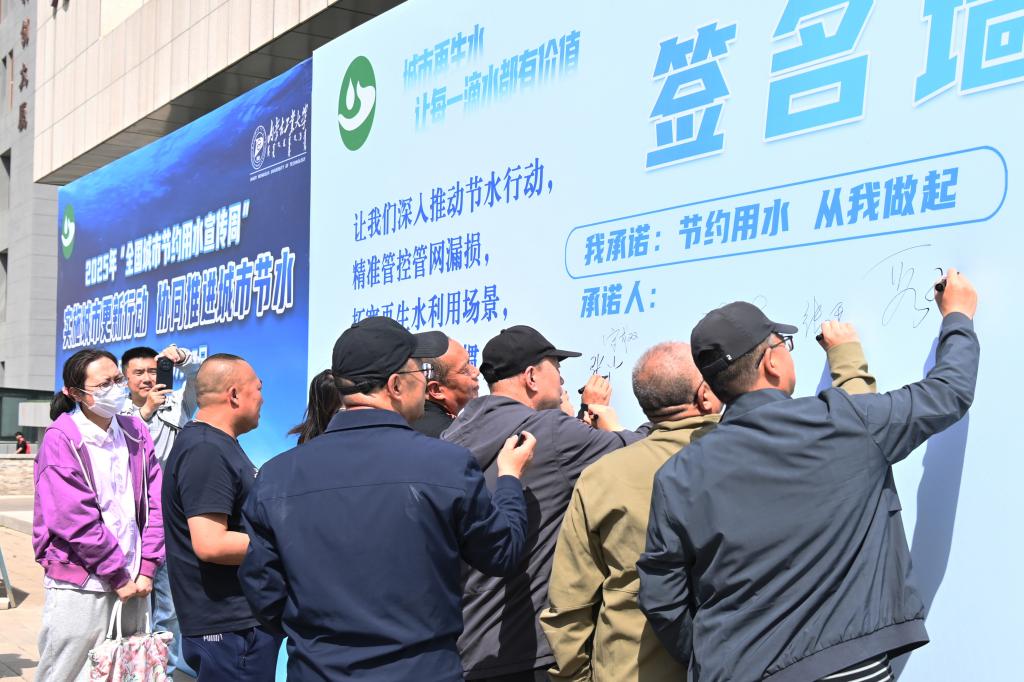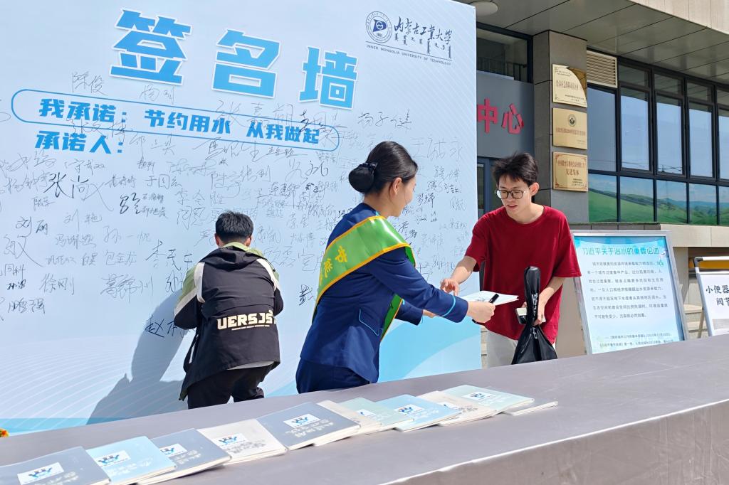活动现场展示了智能节水器具、雨水回收利用系统校园节水创新实践成果,并向广大师生发放宣传手册,通过主题展板、LED宣传视频、承诺签名墙等形式号召广大师生践行节水理念助力城市节水