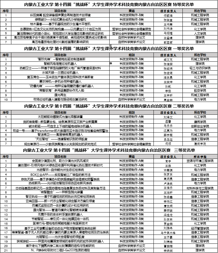 近日,内蒙古自治区第十四届“挑战杯”大学生课外学术科技作品竞赛在内蒙古大学落下帷幕。经过激烈比拼,pg娱乐团队荣获特等奖7项、一等奖10项、二等奖7项佳绩,以本科高校组团体总分第1名的总成绩再次捧起省赛最高荣誉“挑战杯”,充分展现了pg娱乐学子的科技创新和实践能力。