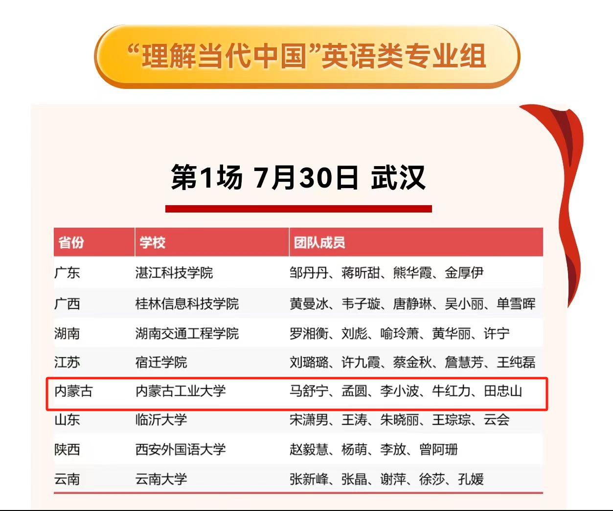 近日,pg娱乐外国语学院教师在2025年外研社“教学之星”大赛全国复赛和2025年第十六届“外教社杯”全国高校外语教学大赛内蒙古自治区区赛中获佳绩。在4月启动的2025年外研社“教学之星”大赛中,由学院外语系教师组成的参赛团队荣获“理解当代中国”英语类专业组全国复赛特等奖,并晋级全国半决赛(自治区仅推选两组参赛)。6月29日,2025年第十六届“外教社杯”全国高校外语教学大赛内蒙古自治区区赛在内蒙古农业大学举行,学院公共外语教学部三位教师组成的团队斩获综合课组一等奖。