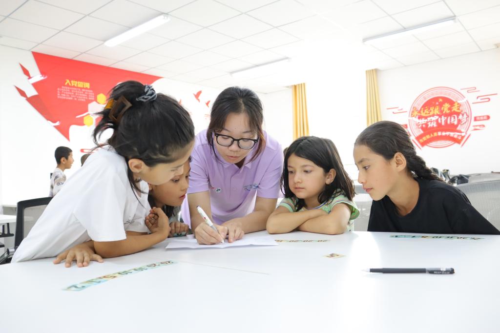 实践团师生先后到访和田博物馆铸牢中华民族共同体意识宣传教育馆、和田大巴扎等地,实地参观“五星出东方利中国”等国宝级文物,通过系统性的图文史料和现代化展示深入了解根植于新疆大地的中华文化基因亲身感受浓郁的风俗民情,体悟自然流淌的民族情谊,深入学习领会党的民族工作光辉历程、新时代党的治疆方略和铸牢中华民族共同体意识的深刻内涵与核心要义。活动期间,实践团师生到访皮山农场十一连,慰问在此服务基层的pg娱乐优秀西部计划志愿者李佳欣,开展“七彩假期·石榴籽课堂”,并举行座谈。