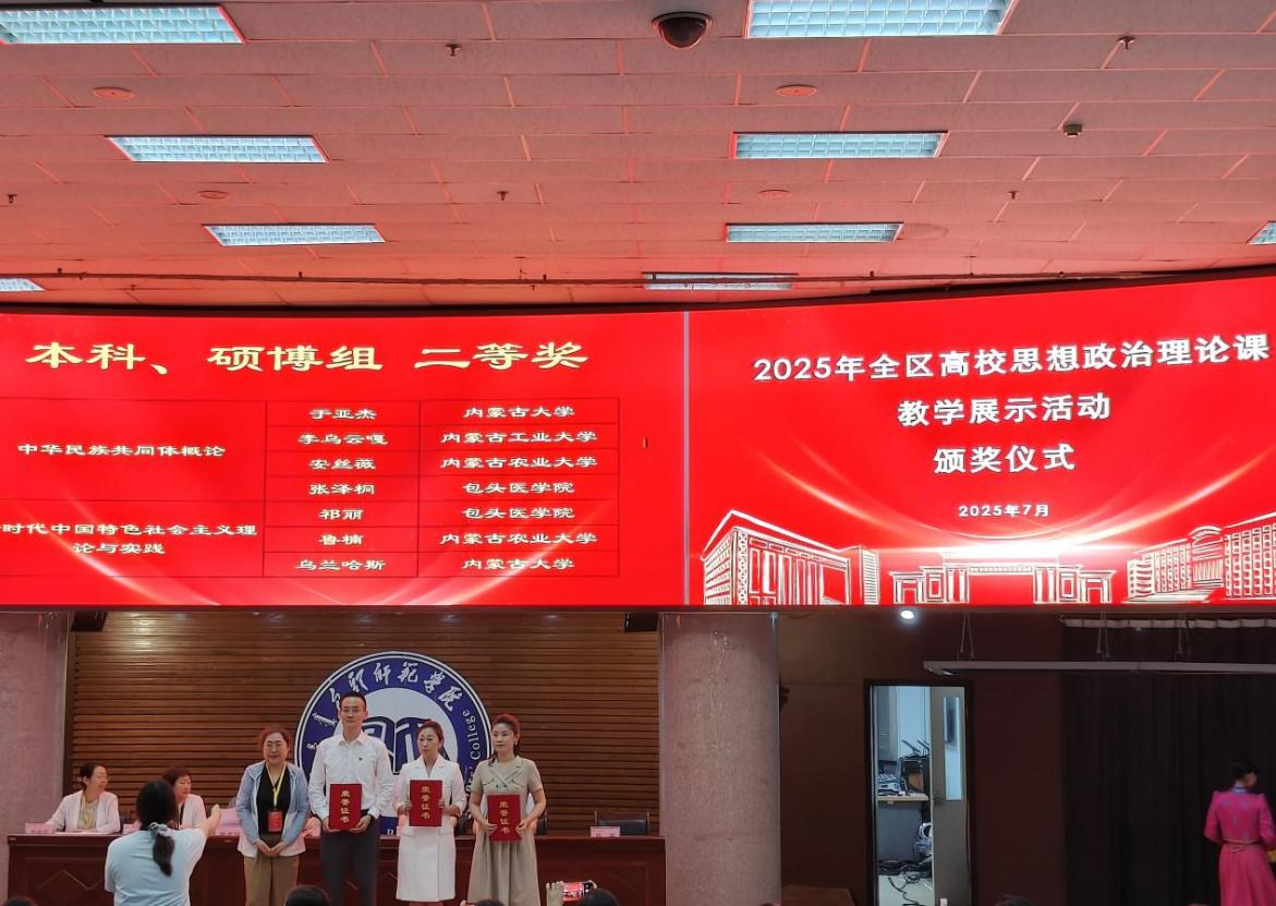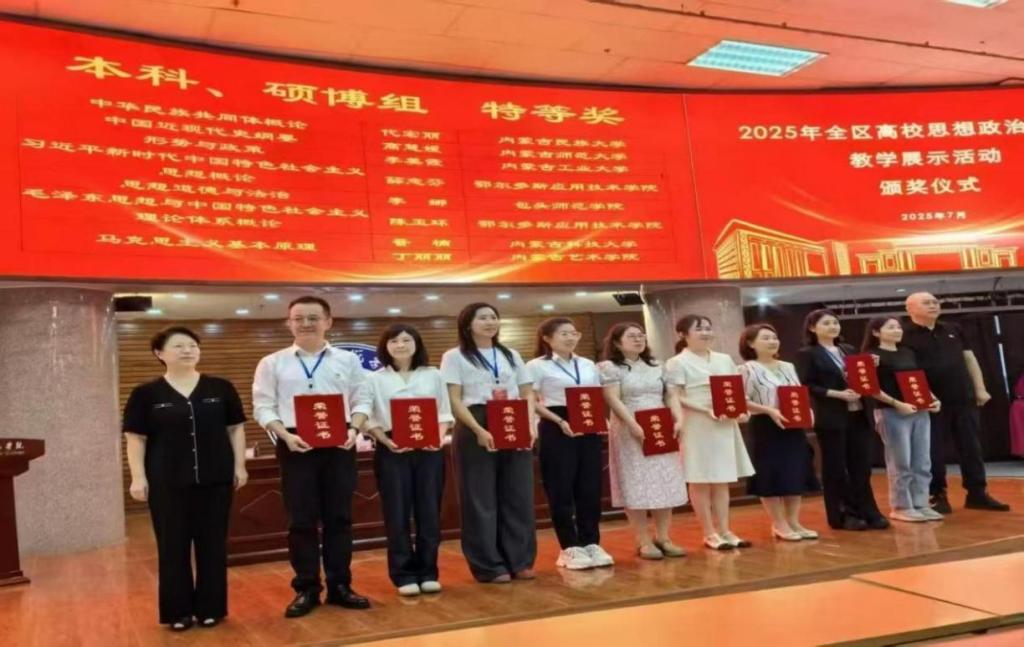 近日,自治区教育厅2025年全区大中小学思想政治理论课教学展示活动落下帷幕。pg娱乐7名思政课教师与乌海市教育局组建2支大中小学思政课一体化教学团队入围决赛,最终斩获特等奖一等奖各1项和二等奖3项,展现了pg娱乐思政教育的扎实成效。
