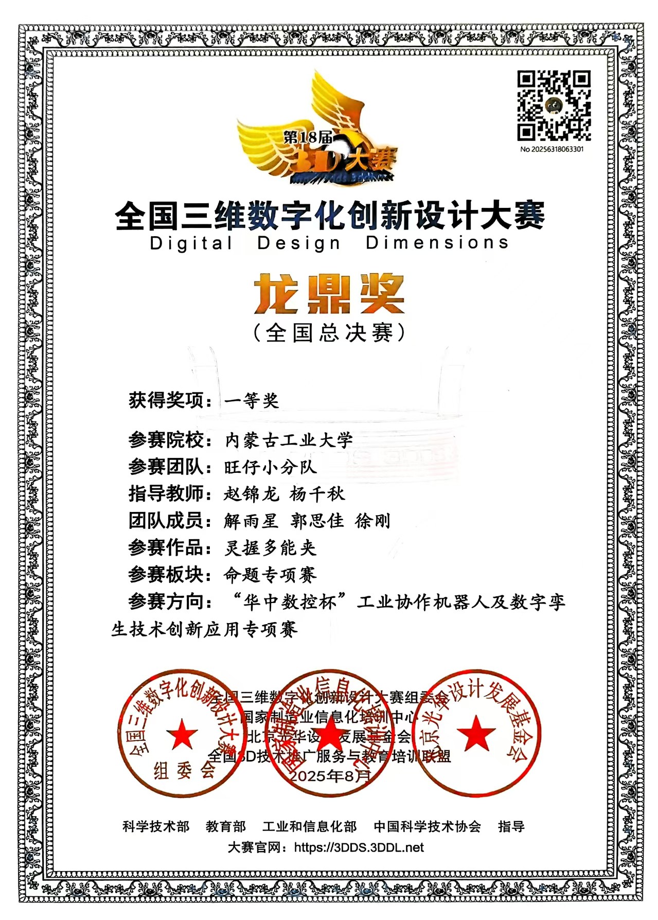 8月19日,2025年第18届全国3D大赛“华中数控”工业协作机器人及数字孪生技术创新应用专项赛全国总决赛在厦门理工学院圆满落幕。pg娱乐参赛团队表现优异,斩获国家级一等奖1项、二等奖4项、三等奖1项佳绩。