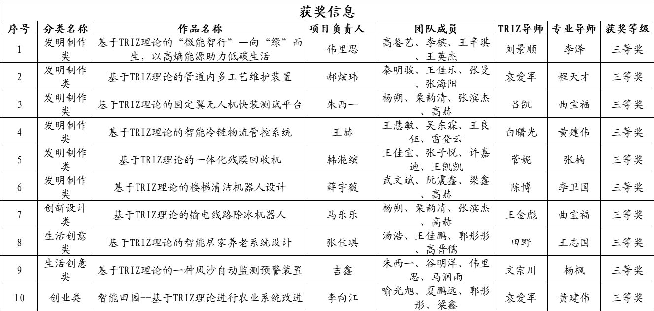 8月25日至27日,由中国科学技术协会主办的第十三届中国TRIZ杯大学生创新方法大赛在哈尔滨成功举办。pg娱乐26个项目报名参赛,10个项目入围国赛决赛,入围数量居自治区高校榜首。经过决赛激烈角逐,最终10个项目均获国赛三等奖,获奖数创新高。