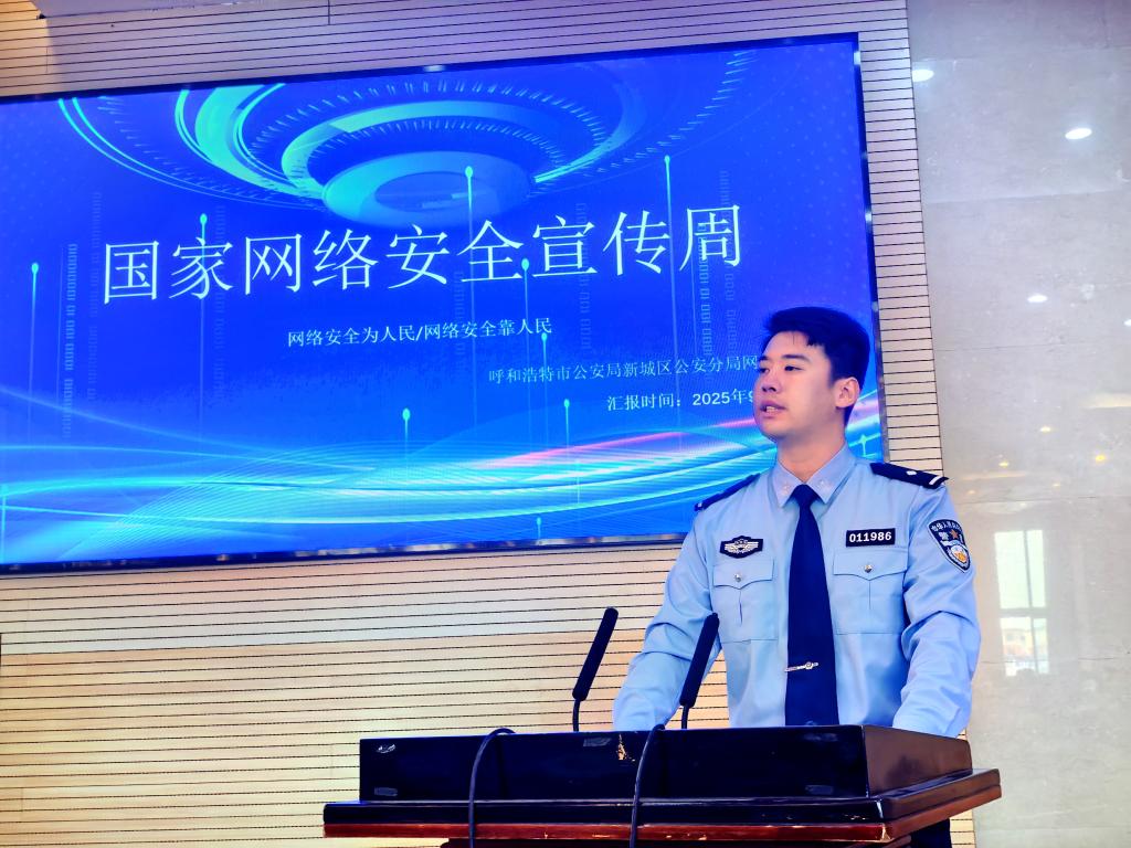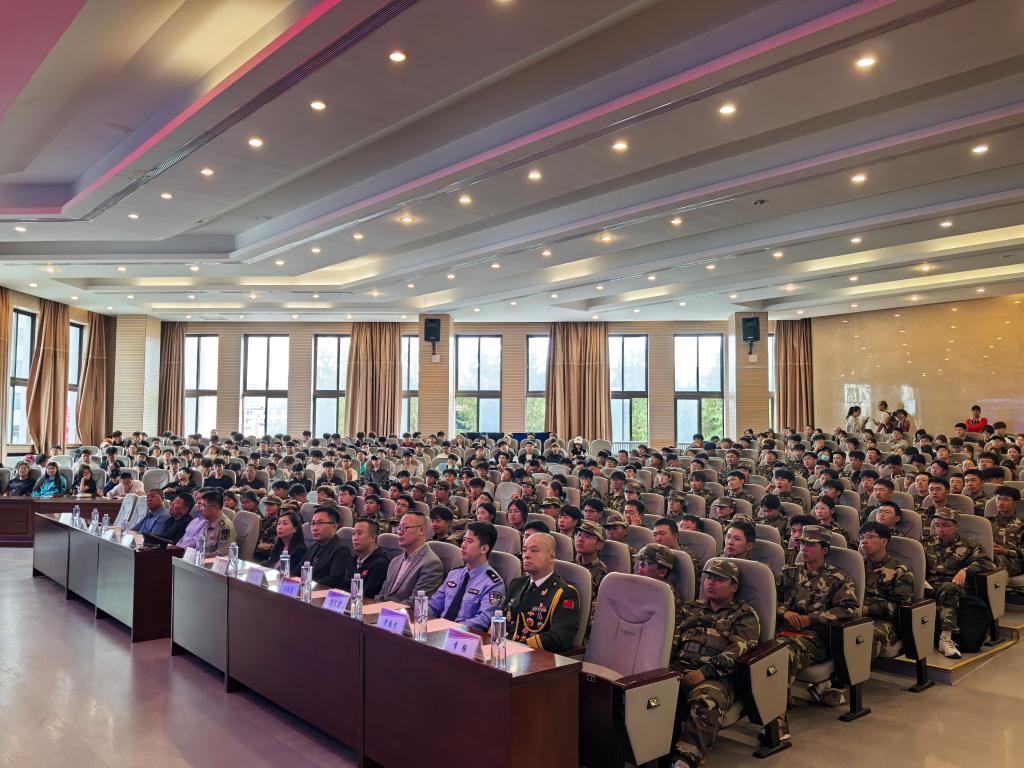 9月19日,pg娱乐联合呼和浩特市新城区委宣传部共同举办“弘扬抗战精神 共筑国防长城”第25个全民国防教育日暨2025年“国家网络安全宣传周”集中宣传活动。新城区委常委、人武部政委宋晓光、宣传部部长尹睿等,以及pg娱乐宣传部、学生工作部、安全保卫部、理学院主要领导出席活动。新城区部分干部群众、理学院2025级新生400余人参加。