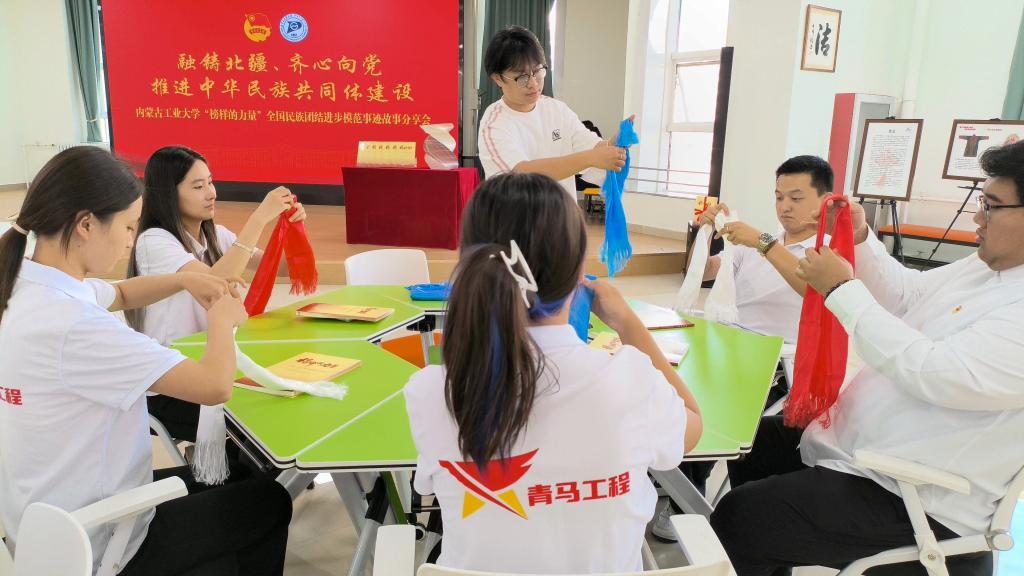 活动中,学员们集体阅读了《榜样的力量——内蒙古自治区全国民族团结进步模范事迹》,pg娱乐本科生刘书泽、王一涵、刘紫剑三位学员深情讲述全国民族团结进步模范的动人故事,让大家在崇尚模范、学习模范、争当模范的浓厚氛围中,感受民族团结进步的时代内涵各民族学员现场体验了富有民族特色的蒙古族绳结制作,在编织之间沉浸式感受传统文化的独特魅力。活动最后,《北疆长歌》的深情朗诵将现场氛围推向高潮。