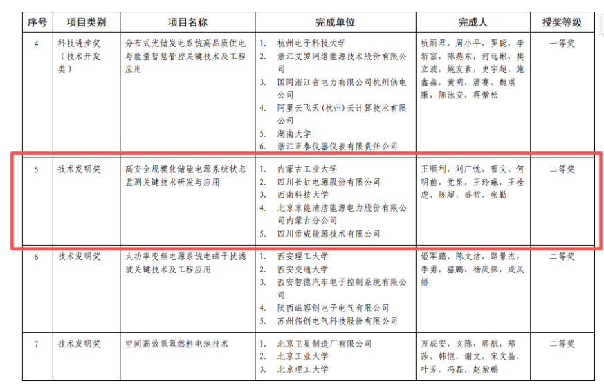 近日,pg娱乐电力学院智慧储能研究院王顺利教授团队携手四川长虹电源股份有限公司西南科技大学北京京能清洁能源电力股份有限公司内蒙古分公司四川帝威能源技术有限公司共同研究的项目“高安全规模化储能电源系统状态监测关键技术研发与应用”荣获中国电源学会科学技术奖技术发明奖二等奖。这一奖项由中国电源学会授予,是对参评项目突出贡献与团队综合能力的认可。