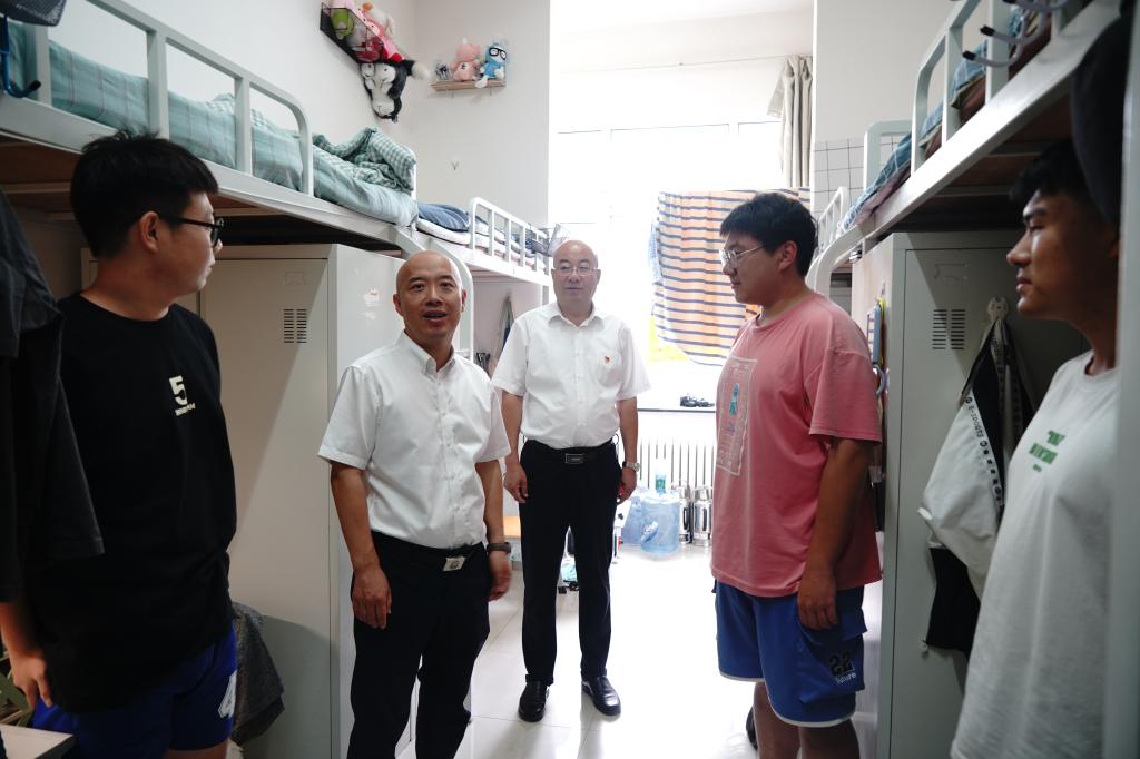 校领导一行还听取了相关工作汇报,向工作在一线的管理服务人员表示感谢,要求相关部门做好统筹协调、加强管理、改善服务,努力为同学们创造更好的学习生活条件,营造良好的育人环境,为学生的健康成长保驾护航