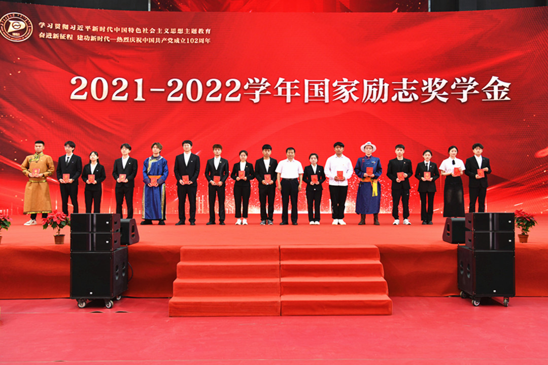 宣讲结束后,与会领导为2021-2022学年荣获国家奖学金、国家励志奖学金、自治区奖学金、自治区励志奖学金和2022年度乌兰夫奖学金的学生颁奖。