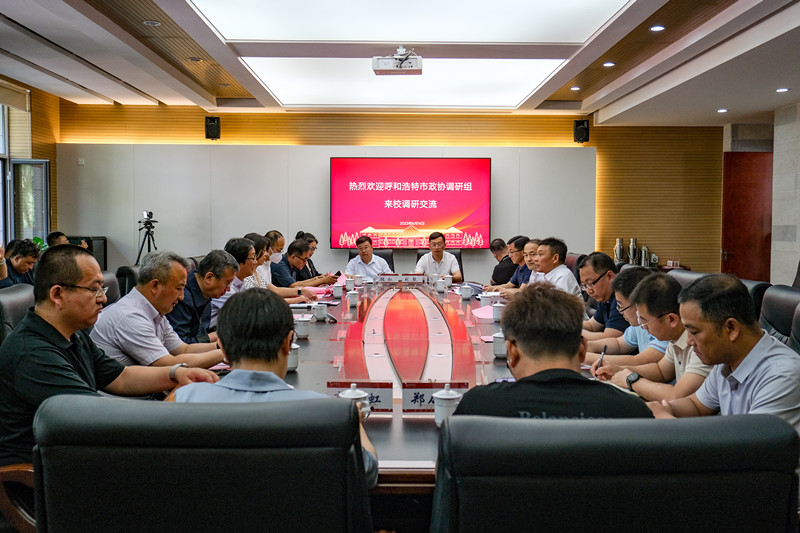 6月14日,呼和浩特市政协副主席民进内蒙古自治区委会副主委民进呼和浩特市委会主委索英俊一行22人pg娱乐调研。常务副校长宝音党委教师工作部(人事处)、科研处等职能部门及相关学院负责人陪同调研。