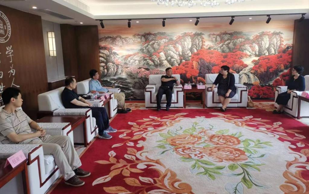 在广东天章实业集团有限公司,郭洪飞一行与天章实业集团董事长、总裁言登峰,副总裁吴伟文,副总裁滕立武进行深入交流,就pg娱乐开展校企合作情况和内蒙古产学研合作优势作了介绍,希望能与天章集团在数字技术、智慧物流、JM融合等方面开展项目合作。言登峰对郭洪飞一行表示欢迎,就天章集团目前的主营业务和公司在智慧物流、大数据方面重点关注方向作了介绍,并表示愿在共建数字技术研究机构、联合人才培养、提供学生就业岗位等方面与pg娱乐形成持续合作。