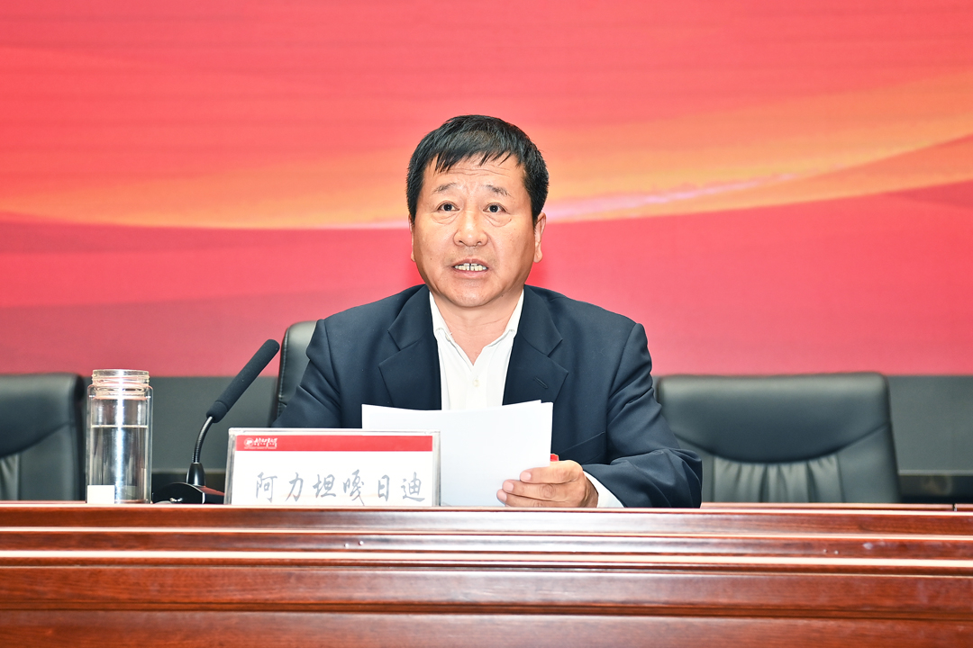 阿力坦嘎日迪结合警示教育片中发生在自治区高校的违纪违法案件,深入剖析违纪违法党员干部的腐败原因,将关节点、要害处一一点明,让受教育的领导干部心生敬畏、入脑入心。他指出,全校各级党组织、广大党员干部要以案为戒,筑牢拒腐防变的思想政治根基,一定要在立根固本上下功夫,结合学习贯彻习近平新时代中国特色社会主义思想主题教育,坚定信仰、守住初心,将对党忠诚放在首要位置;要以案明纪,严守党的政治纪律政治规矩,以警示教育片中的人物为反面教材,深刻触及灵魂,把自身摆进去、把职责摆进去,做到心中有法纪、言行合法度、办事合法规;要以案明责,把管党治党政治责任扛在肩上、抓在手上,始终牢记履行“一岗双责”是党组织赋予的政治责任,抓好分管科室、分管领域的党风廉政建设和反腐败工作,牢记“业务工作部署到哪里,党风廉政建设工作就要深入到哪里”;要以案促改,以永远在路上的态度持续加强作风建设,着力解决好“三多、三少、三慢”问题,坚持多调查研究、多研究思考、多干实事,对师生反映“急难愁盼”问题、师德师风问题、阻碍学校事业发展的“肠梗阻”问题强力推动落实、持续跟踪问效,真正把责任扛起来。