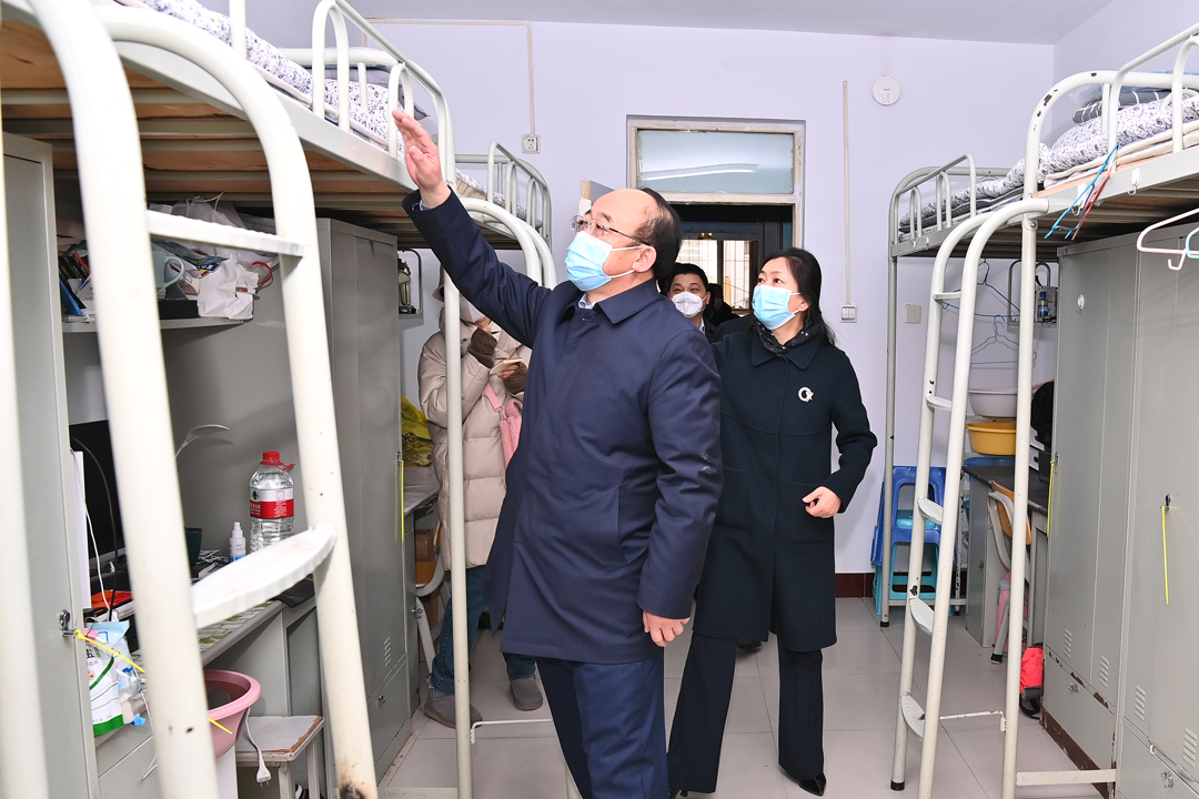 在两校区健康驿站,校领导详细查看医疗设施及物资储备、使用情况,叮嘱驿站医护人员要以学生为本,在清楚掌握入站学生基础病的基础上,关注病情进展,做到及时发现问题、及时就医;要求驿站相关工作人员要注重细节,为学生提供暖心服务,让学生在健康驿站期间吃住舒心、学习顺利、早日出站。