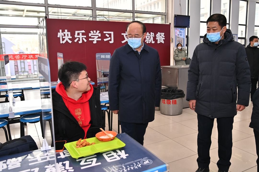 在新城校区馨苑餐厅,校领导与正在就餐的研究生交流了解返校情况,询问他们对菜品、价格等方面的意见建议,并勉励同学们新学期继续秉持脚踏实地、求真务实的作风,深学践悟,锐意进取,不断取得新成绩。