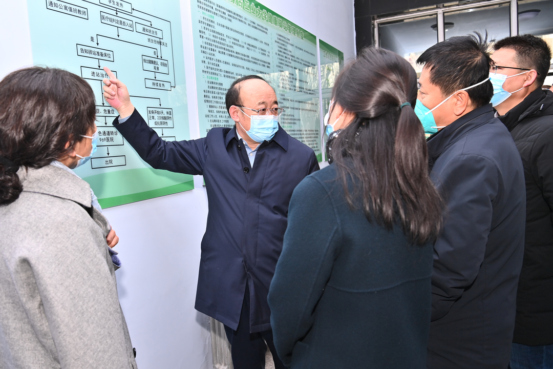 在两校区校医院,校领导查看了发热门诊软硬件设施,了解医护人员配备和工作情况,叮嘱大家要深入学习《新型冠状病毒感染防控方案(第十版)》和教育部、教育厅相关要求,科学研判、精确分诊,甄别普通症、重症并及时送医,确保师生生命安全和身体健康。